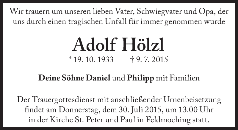 Hier finden Sie alle Traueranzeigen aus der Zeitung, die bisher für Adolf Hölzl erschienen sind. Weitere Traueranzeigen, die in der Zeitung erscheinen, werden hier ebenfalls aufgelistet