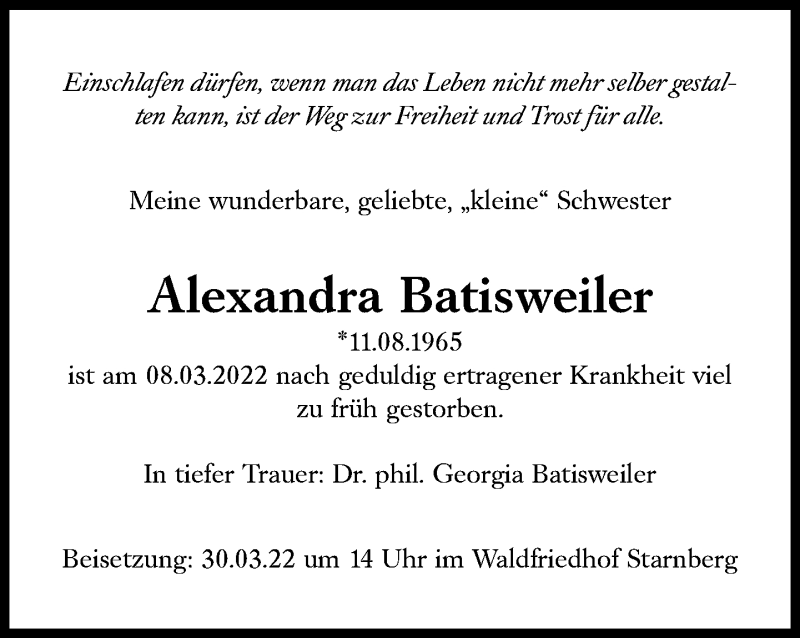 Hier finden Sie alle Traueranzeigen aus der Zeitung, die bisher für Alexandra Batisweiler erschienen sind. Weitere Traueranzeigen, die in der Zeitung erscheinen, werden hier ebenfalls aufgelistet