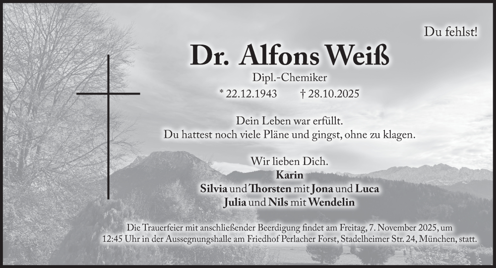 Hier finden Sie alle Traueranzeigen aus der Zeitung, die bisher für Alfons Weiß erschienen sind. Weitere Traueranzeigen, die in der Zeitung erscheinen, werden hier ebenfalls aufgelistet