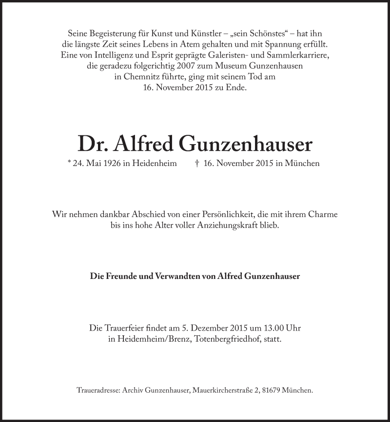 Hier finden Sie alle Traueranzeigen aus der Zeitung, die bisher für Alfred Gunzenhauser erschienen sind. Weitere Traueranzeigen, die in der Zeitung erscheinen, werden hier ebenfalls aufgelistet