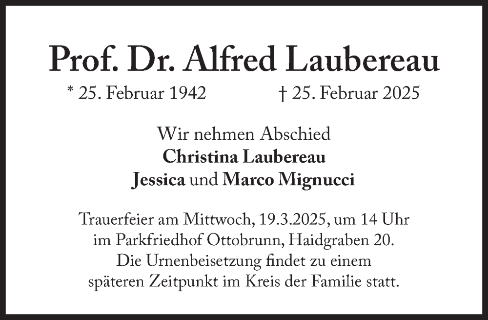 Hier finden Sie alle Traueranzeigen aus der Zeitung, die bisher für Alfred Laubereau erschienen sind. Weitere Traueranzeigen, die in der Zeitung erscheinen, werden hier ebenfalls aufgelistet