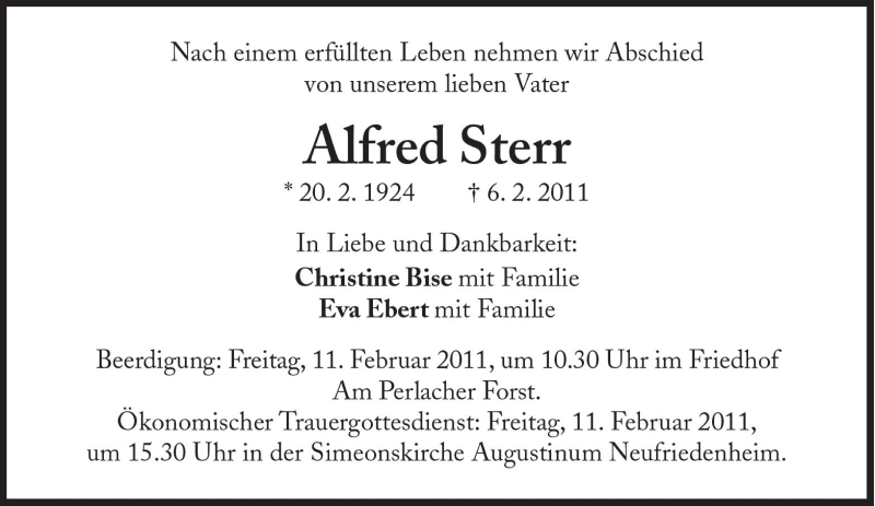 Hier finden Sie alle Traueranzeigen aus der Zeitung, die bisher für Alfred Sterr erschienen sind. Weitere Traueranzeigen, die in der Zeitung erscheinen, werden hier ebenfalls aufgelistet