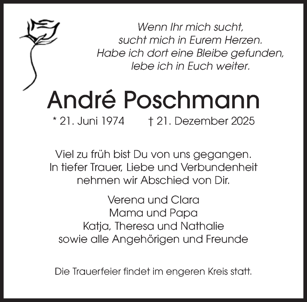 Hier finden Sie alle Traueranzeigen aus der Zeitung, die bisher für André Poschmann erschienen sind. Weitere Traueranzeigen, die in der Zeitung erscheinen, werden hier ebenfalls aufgelistet