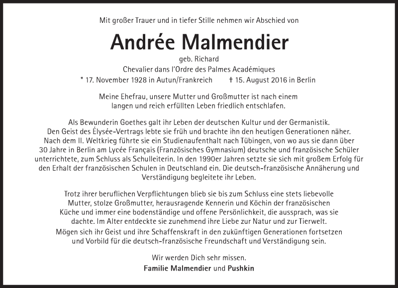 Hier finden Sie alle Traueranzeigen aus der Zeitung, die bisher für Andree Malmendier erschienen sind. Weitere Traueranzeigen, die in der Zeitung erscheinen, werden hier ebenfalls aufgelistet