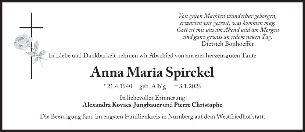 Hier finden Sie alle Traueranzeigen aus der Zeitung, die bisher für Anna Maria Spirckel erschienen sind. Weitere Traueranzeigen, die in der Zeitung erscheinen, werden hier ebenfalls aufgelistet