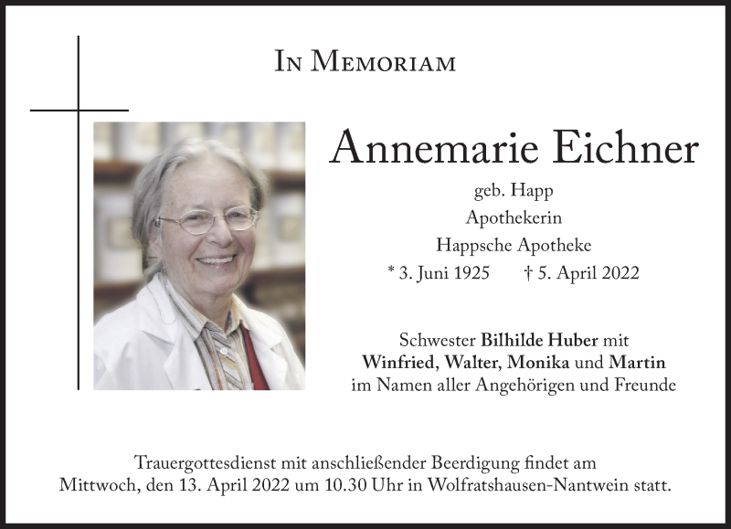 Hier finden Sie alle Traueranzeigen aus der Zeitung, die bisher für Annemarie Eichner erschienen sind. Weitere Traueranzeigen, die in der Zeitung erscheinen, werden hier ebenfalls aufgelistet
