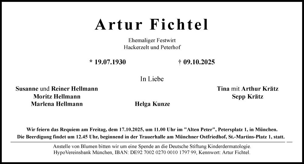 Hier finden Sie alle Traueranzeigen aus der Zeitung, die bisher für Artur Fichtel erschienen sind. Weitere Traueranzeigen, die in der Zeitung erscheinen, werden hier ebenfalls aufgelistet