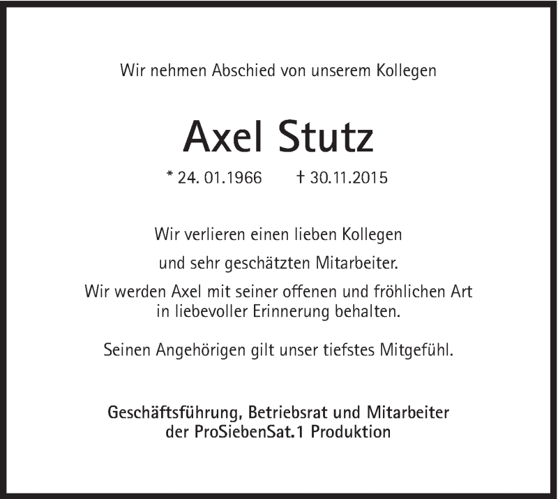 Hier finden Sie alle Traueranzeigen aus der Zeitung, die bisher für Axel Stutz erschienen sind. Weitere Traueranzeigen, die in der Zeitung erscheinen, werden hier ebenfalls aufgelistet