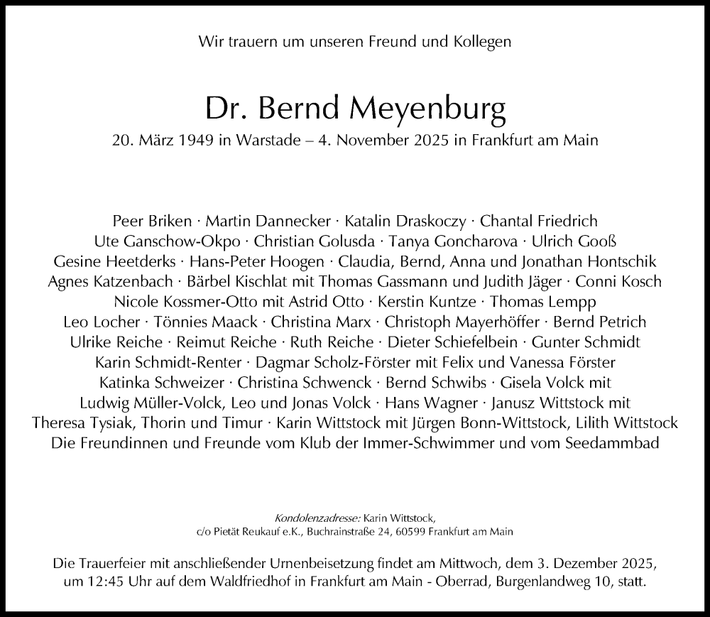 Hier finden Sie alle Traueranzeigen aus der Zeitung, die bisher für Bernd Meyenburg erschienen sind. Weitere Traueranzeigen, die in der Zeitung erscheinen, werden hier ebenfalls aufgelistet