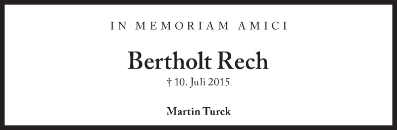 Hier finden Sie alle Traueranzeigen aus der Zeitung, die bisher für Bertholt Rech erschienen sind. Weitere Traueranzeigen, die in der Zeitung erscheinen, werden hier ebenfalls aufgelistet