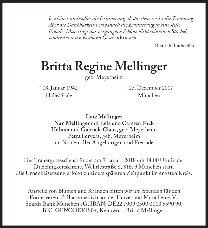 Hier finden Sie alle Traueranzeigen aus der Zeitung, die bisher für Britta Regine Mellinger erschienen sind. Weitere Traueranzeigen, die in der Zeitung erscheinen, werden hier ebenfalls aufgelistet