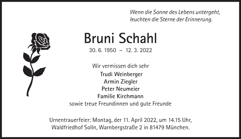 Hier finden Sie alle Traueranzeigen aus der Zeitung, die bisher für Bruni Schahl erschienen sind. Weitere Traueranzeigen, die in der Zeitung erscheinen, werden hier ebenfalls aufgelistet
