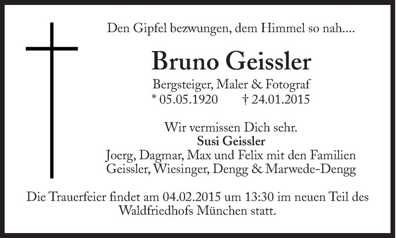 Hier finden Sie alle Traueranzeigen aus der Zeitung, die bisher für Bruno Geissler erschienen sind. Weitere Traueranzeigen, die in der Zeitung erscheinen, werden hier ebenfalls aufgelistet