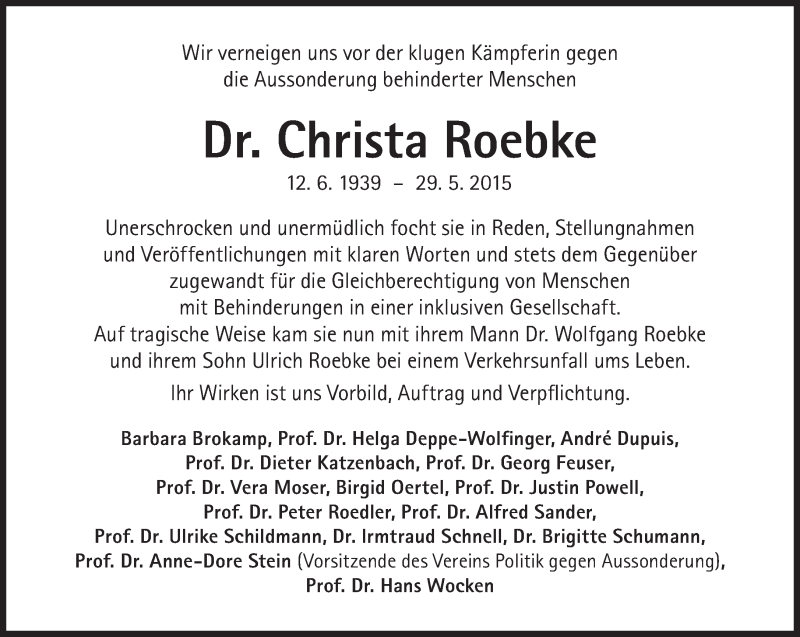 Hier finden Sie alle Traueranzeigen aus der Zeitung, die bisher für Christa Roebke erschienen sind. Weitere Traueranzeigen, die in der Zeitung erscheinen, werden hier ebenfalls aufgelistet