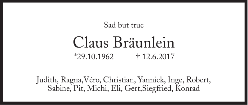 Hier finden Sie alle Traueranzeigen aus der Zeitung, die bisher für Claus Bräunlein erschienen sind. Weitere Traueranzeigen, die in der Zeitung erscheinen, werden hier ebenfalls aufgelistet
