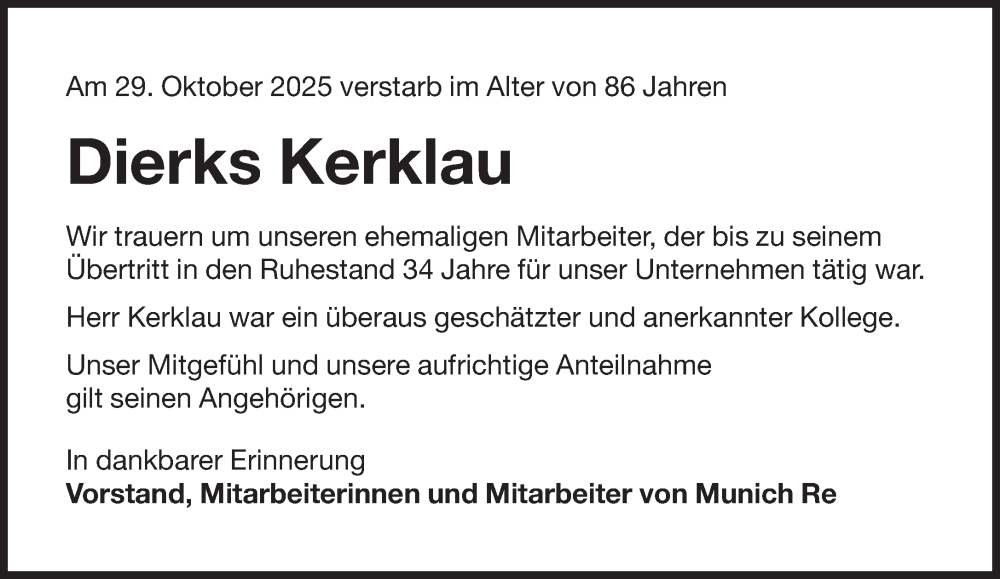Hier finden Sie alle Traueranzeigen aus der Zeitung, die bisher für Dierks Kerklau erschienen sind. Weitere Traueranzeigen, die in der Zeitung erscheinen, werden hier ebenfalls aufgelistet