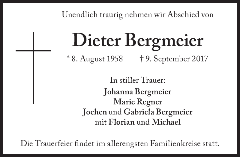 Hier finden Sie alle Traueranzeigen aus der Zeitung, die bisher für Dieter Bergmeier erschienen sind. Weitere Traueranzeigen, die in der Zeitung erscheinen, werden hier ebenfalls aufgelistet