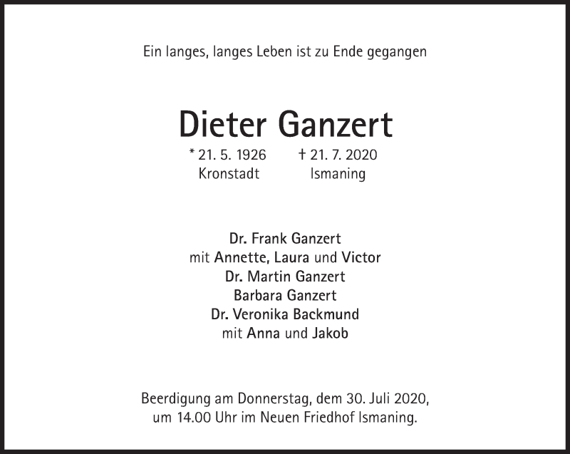 Hier finden Sie alle Traueranzeigen aus der Zeitung, die bisher für Dieter Ganzert erschienen sind. Weitere Traueranzeigen, die in der Zeitung erscheinen, werden hier ebenfalls aufgelistet