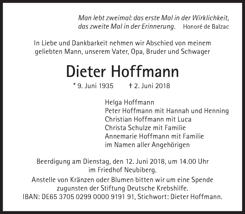 Hier finden Sie alle Traueranzeigen aus der Zeitung, die bisher für Dieter Hoffmann erschienen sind. Weitere Traueranzeigen, die in der Zeitung erscheinen, werden hier ebenfalls aufgelistet