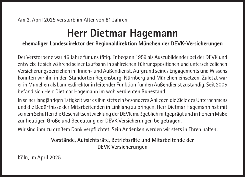 Hier finden Sie alle Traueranzeigen aus der Zeitung, die bisher für Dietmar Hagemann erschienen sind. Weitere Traueranzeigen, die in der Zeitung erscheinen, werden hier ebenfalls aufgelistet