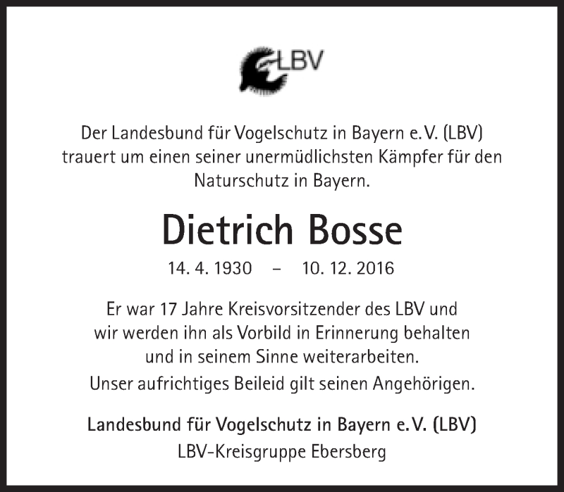 Hier finden Sie alle Traueranzeigen aus der Zeitung, die bisher für Dietrich Bosse erschienen sind. Weitere Traueranzeigen, die in der Zeitung erscheinen, werden hier ebenfalls aufgelistet