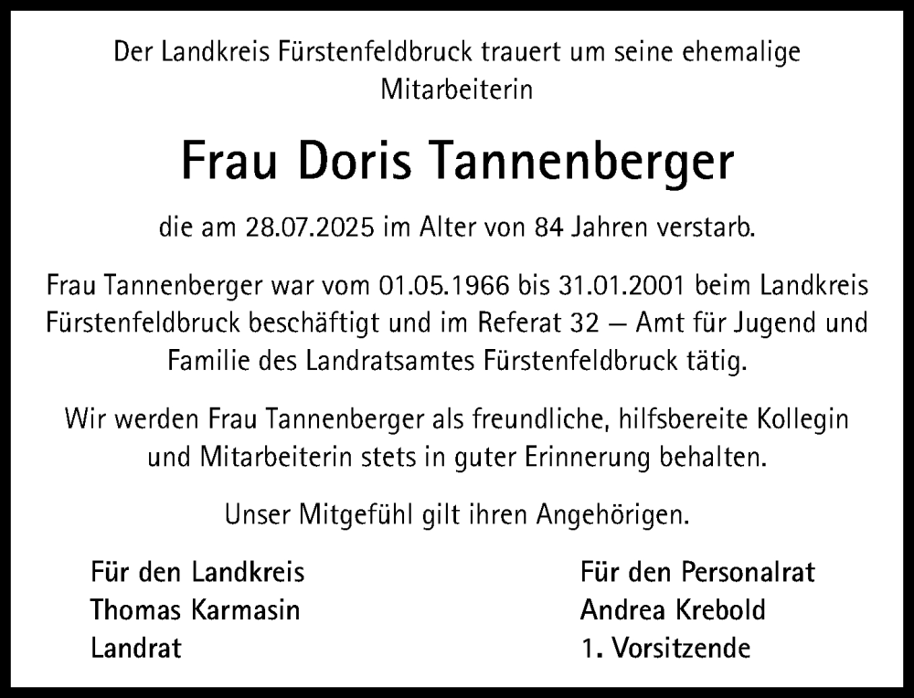 Hier finden Sie alle Traueranzeigen aus der Zeitung, die bisher für Doris Tannenberger erschienen sind. Weitere Traueranzeigen, die in der Zeitung erscheinen, werden hier ebenfalls aufgelistet