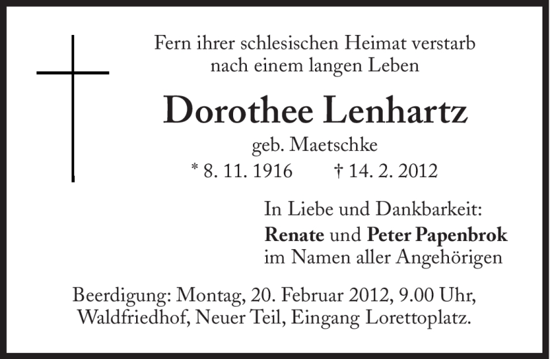 Hier finden Sie alle Traueranzeigen aus der Zeitung, die bisher für Dorothee Lenhartz erschienen sind. Weitere Traueranzeigen, die in der Zeitung erscheinen, werden hier ebenfalls aufgelistet