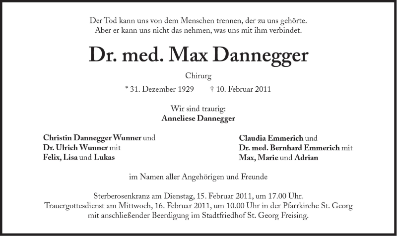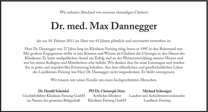 Hier finden Sie alle Traueranzeigen aus der Zeitung, die bisher für Max Dannegger erschienen sind. Weitere Traueranzeigen, die in der Zeitung erscheinen, werden hier ebenfalls aufgelistet