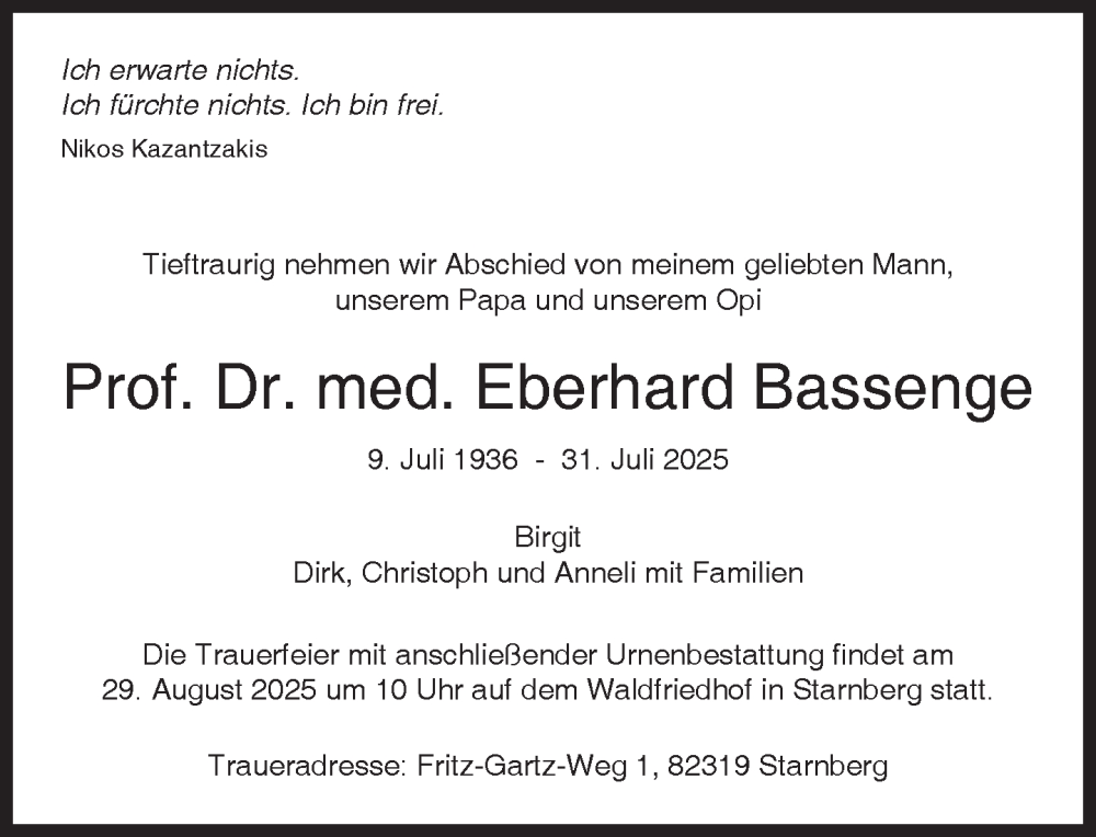 Hier finden Sie alle Traueranzeigen aus der Zeitung, die bisher für Eberhard Bassenge erschienen sind. Weitere Traueranzeigen, die in der Zeitung erscheinen, werden hier ebenfalls aufgelistet