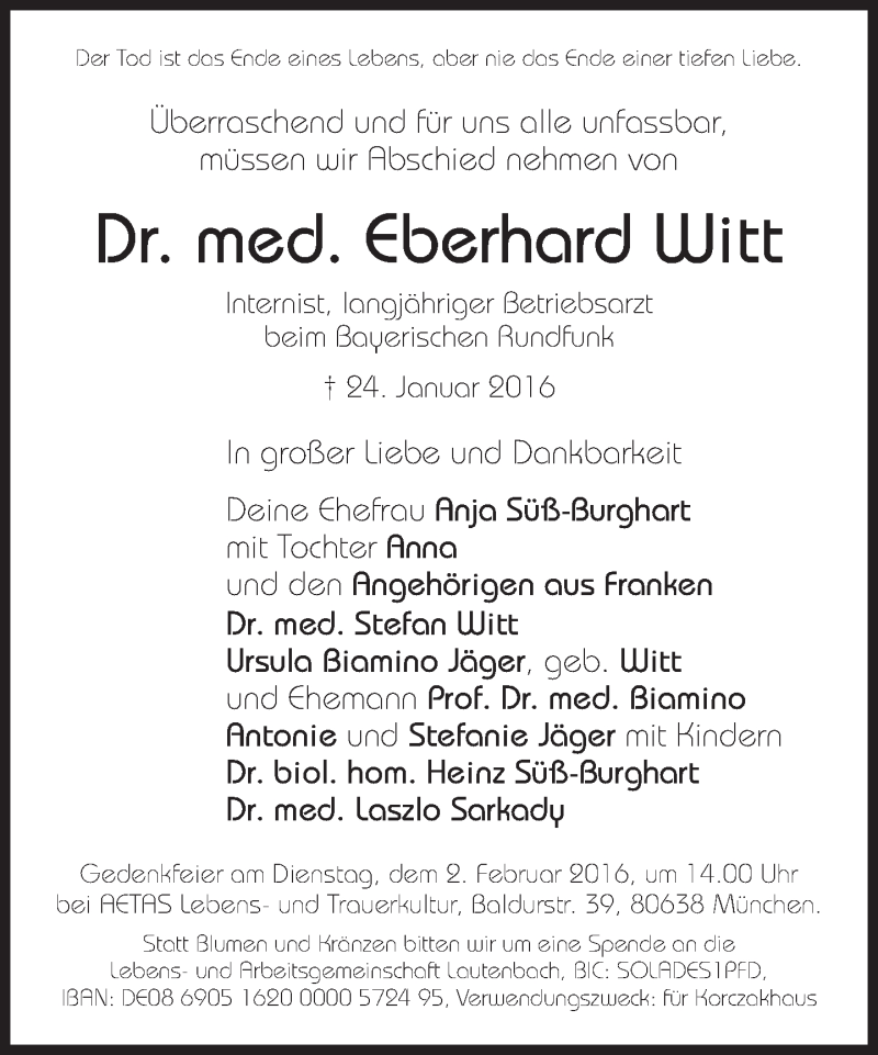 Hier finden Sie alle Traueranzeigen aus der Zeitung, die bisher für Eberhard Witt erschienen sind. Weitere Traueranzeigen, die in der Zeitung erscheinen, werden hier ebenfalls aufgelistet