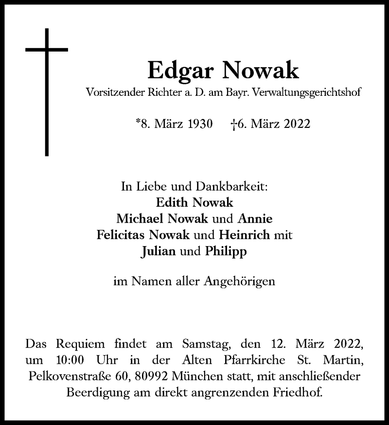 Hier finden Sie alle Traueranzeigen aus der Zeitung, die bisher für Edgar Nowak erschienen sind. Weitere Traueranzeigen, die in der Zeitung erscheinen, werden hier ebenfalls aufgelistet