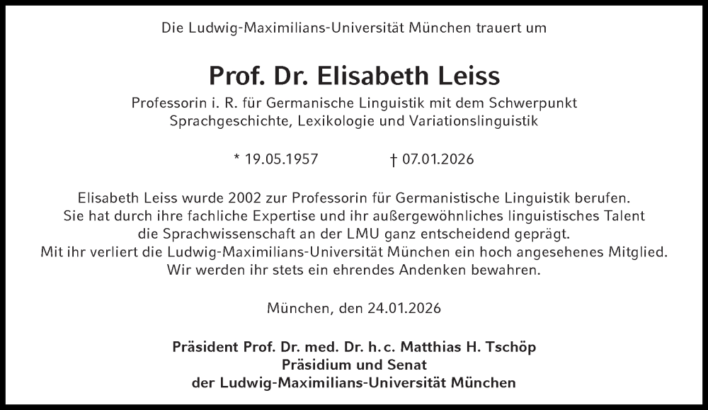 Hier finden Sie alle Traueranzeigen aus der Zeitung, die bisher für Elisabeth Leiss erschienen sind. Weitere Traueranzeigen, die in der Zeitung erscheinen, werden hier ebenfalls aufgelistet