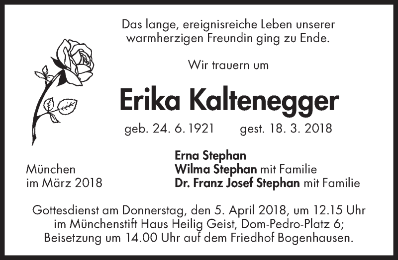 Hier finden Sie alle Traueranzeigen aus der Zeitung, die bisher für Erika Kaltenegger erschienen sind. Weitere Traueranzeigen, die in der Zeitung erscheinen, werden hier ebenfalls aufgelistet