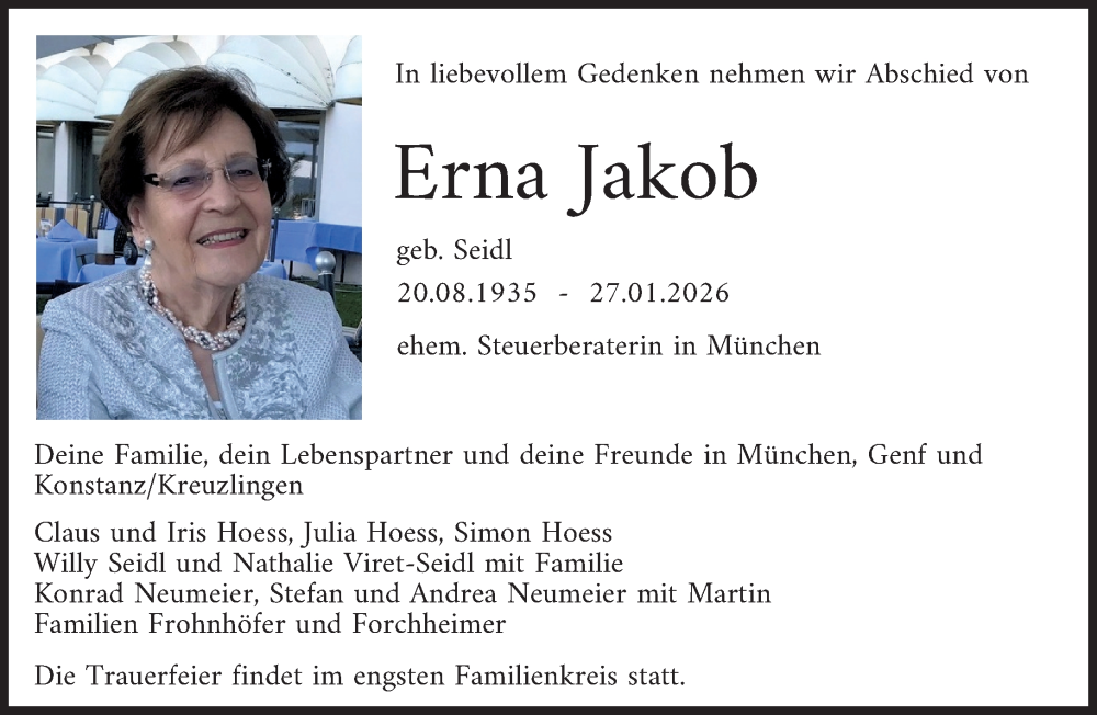 Hier finden Sie alle Traueranzeigen aus der Zeitung, die bisher für Erna Jakob erschienen sind. Weitere Traueranzeigen, die in der Zeitung erscheinen, werden hier ebenfalls aufgelistet