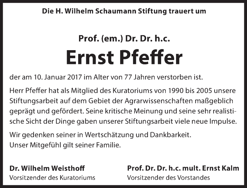 Hier finden Sie alle Traueranzeigen aus der Zeitung, die bisher für Ernst Pfeffer erschienen sind. Weitere Traueranzeigen, die in der Zeitung erscheinen, werden hier ebenfalls aufgelistet