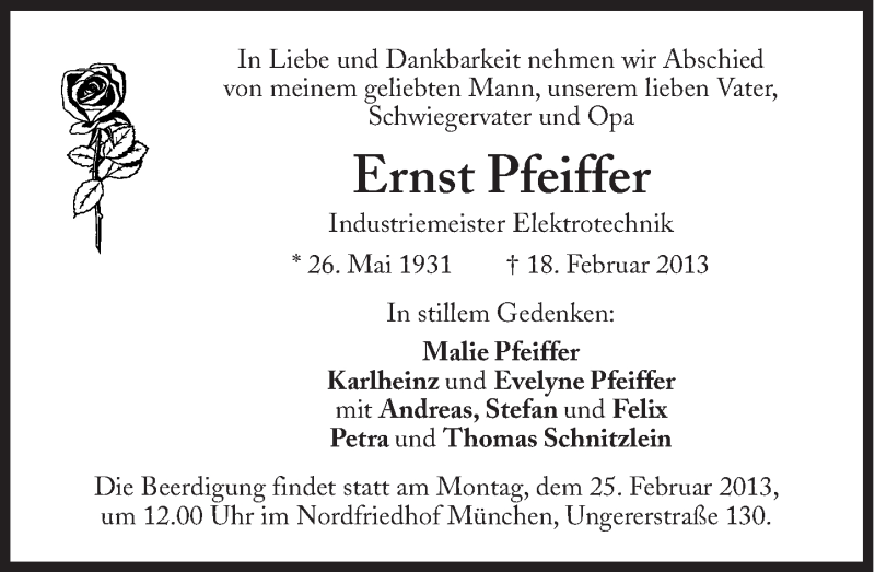 Hier finden Sie alle Traueranzeigen aus der Zeitung, die bisher für Ernst Pfeiffer erschienen sind. Weitere Traueranzeigen, die in der Zeitung erscheinen, werden hier ebenfalls aufgelistet