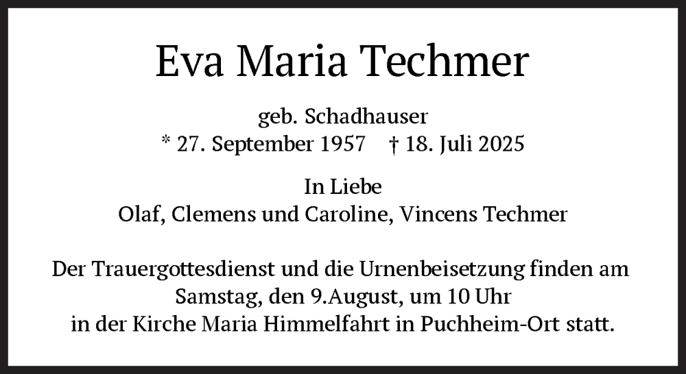 Hier finden Sie alle Traueranzeigen aus der Zeitung, die bisher für Eva Maria Techmer erschienen sind. Weitere Traueranzeigen, die in der Zeitung erscheinen, werden hier ebenfalls aufgelistet