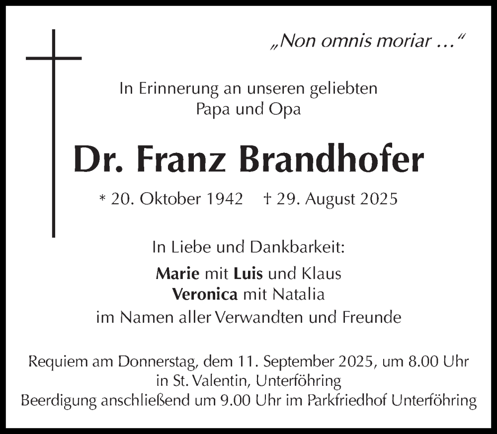 Hier finden Sie alle Traueranzeigen aus der Zeitung, die bisher für Franz Brandhofer erschienen sind. Weitere Traueranzeigen, die in der Zeitung erscheinen, werden hier ebenfalls aufgelistet