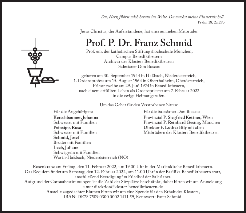 Hier finden Sie alle Traueranzeigen aus der Zeitung, die bisher für Franz Schmid erschienen sind. Weitere Traueranzeigen, die in der Zeitung erscheinen, werden hier ebenfalls aufgelistet