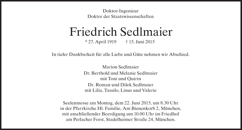Hier finden Sie alle Traueranzeigen aus der Zeitung, die bisher für Friedrich Sedlmaier erschienen sind. Weitere Traueranzeigen, die in der Zeitung erscheinen, werden hier ebenfalls aufgelistet