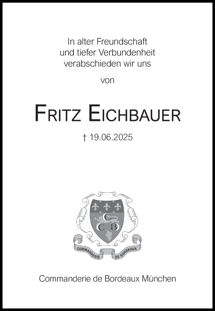 Hier finden Sie alle Traueranzeigen aus der Zeitung, die bisher für Fritz Eichbauer erschienen sind. Weitere Traueranzeigen, die in der Zeitung erscheinen, werden hier ebenfalls aufgelistet