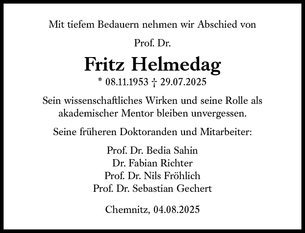 Hier finden Sie alle Traueranzeigen aus der Zeitung, die bisher für Fritz Helmedag erschienen sind. Weitere Traueranzeigen, die in der Zeitung erscheinen, werden hier ebenfalls aufgelistet