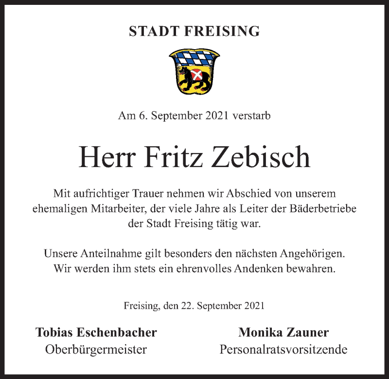 Hier finden Sie alle Traueranzeigen aus der Zeitung, die bisher für Fritz Zebisch erschienen sind. Weitere Traueranzeigen, die in der Zeitung erscheinen, werden hier ebenfalls aufgelistet