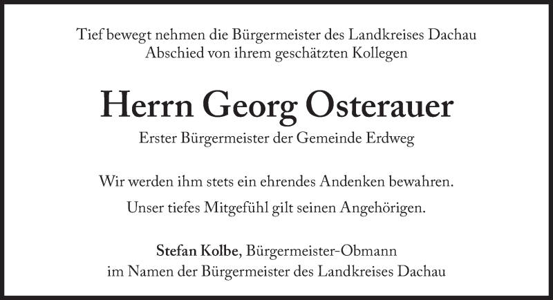 Hier finden Sie alle Traueranzeigen aus der Zeitung, die bisher für Georg Osterauer erschienen sind. Weitere Traueranzeigen, die in der Zeitung erscheinen, werden hier ebenfalls aufgelistet