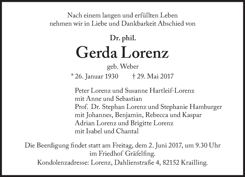 Hier finden Sie alle Traueranzeigen aus der Zeitung, die bisher für Gerda Lorenz erschienen sind. Weitere Traueranzeigen, die in der Zeitung erscheinen, werden hier ebenfalls aufgelistet