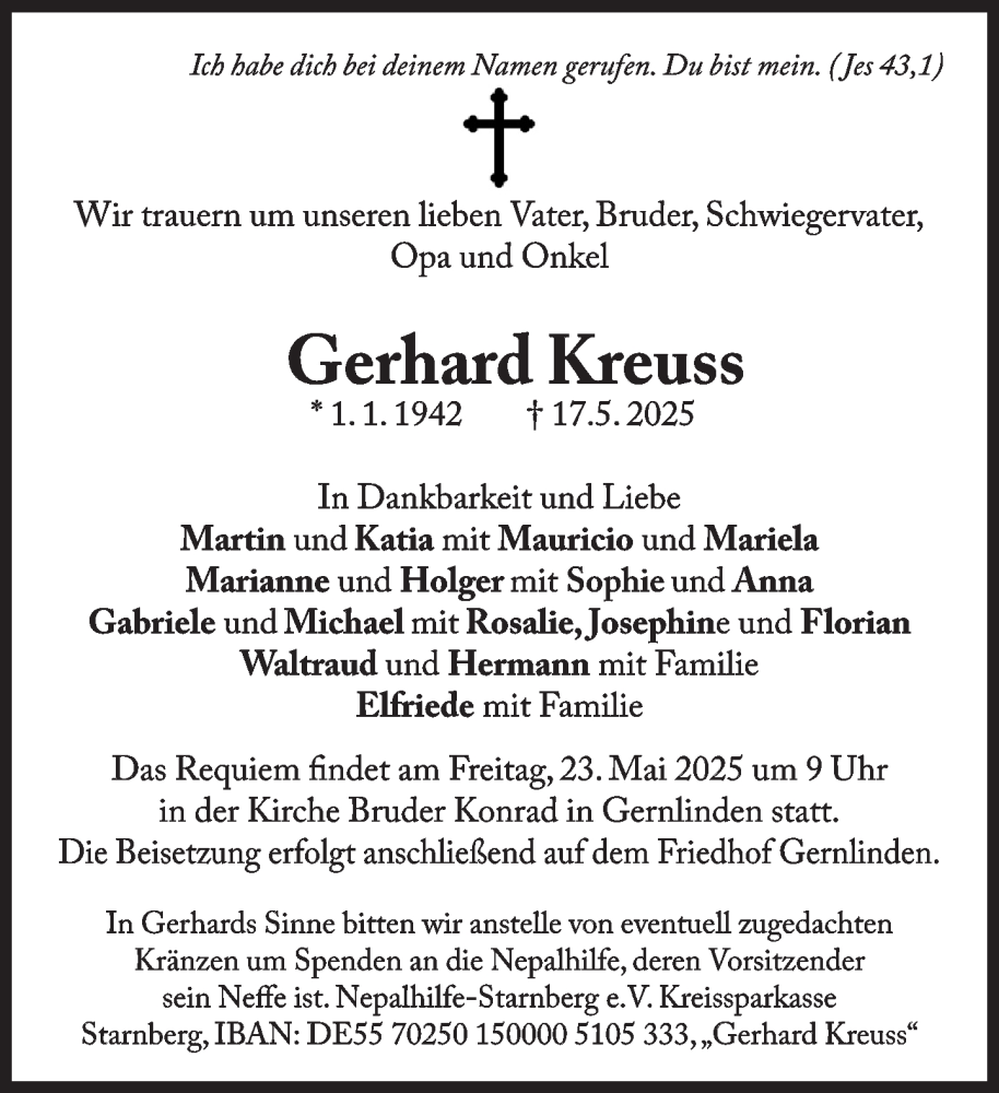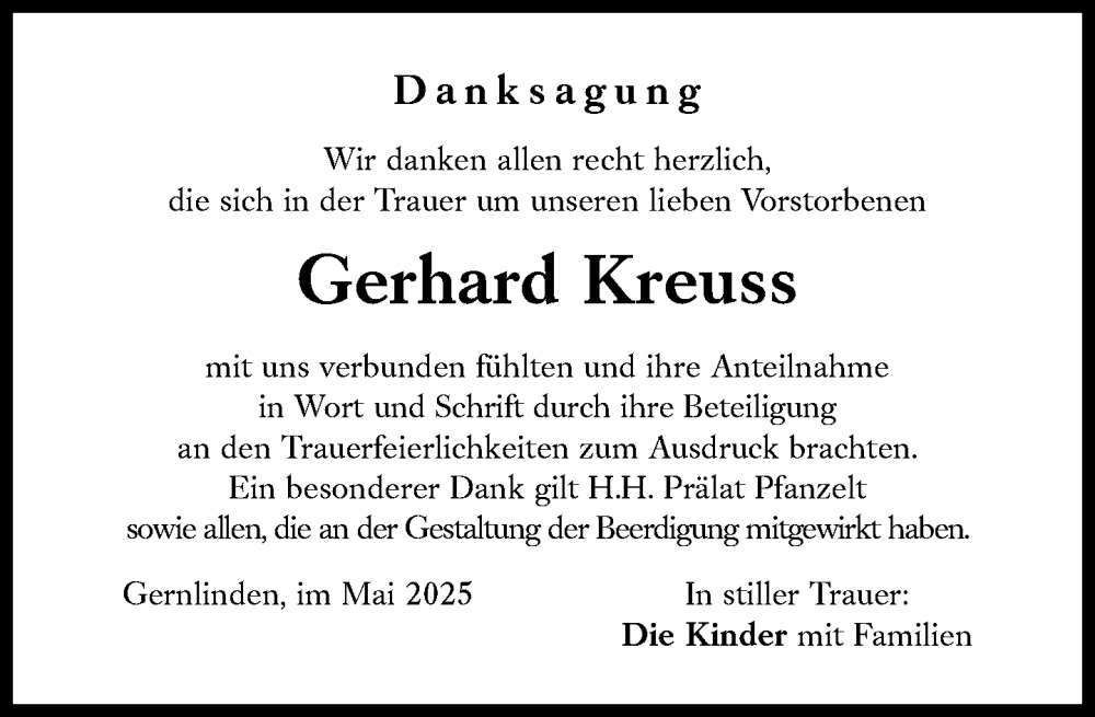 Hier finden Sie alle Traueranzeigen aus der Zeitung, die bisher für Gerhard Kreuss erschienen sind. Weitere Traueranzeigen, die in der Zeitung erscheinen, werden hier ebenfalls aufgelistet