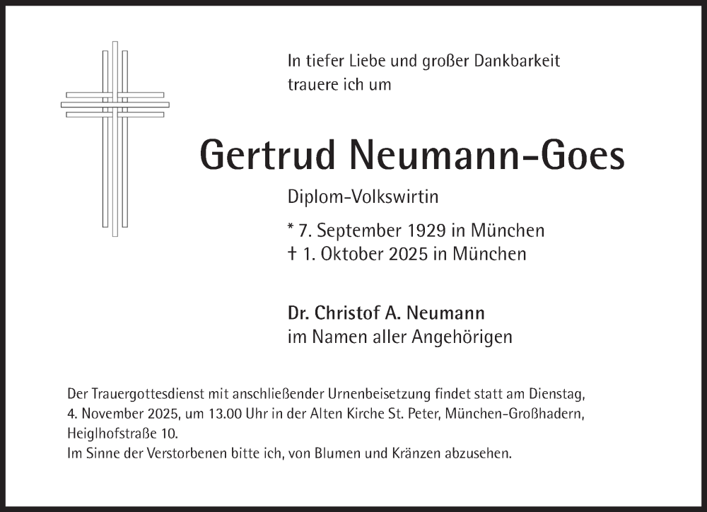 Hier finden Sie alle Traueranzeigen aus der Zeitung, die bisher für Gertrud Neumann-Goes erschienen sind. Weitere Traueranzeigen, die in der Zeitung erscheinen, werden hier ebenfalls aufgelistet