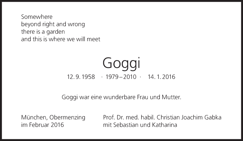 Hier finden Sie alle Traueranzeigen aus der Zeitung, die bisher für Goggi erschienen sind. Weitere Traueranzeigen, die in der Zeitung erscheinen, werden hier ebenfalls aufgelistet