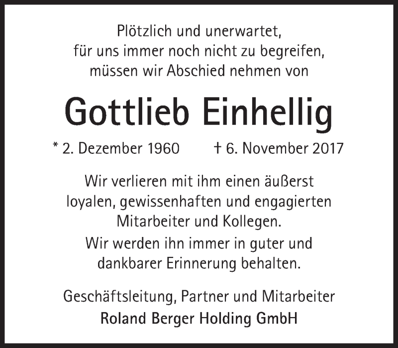Hier finden Sie alle Traueranzeigen aus der Zeitung, die bisher für Gottlieb Einhellig erschienen sind. Weitere Traueranzeigen, die in der Zeitung erscheinen, werden hier ebenfalls aufgelistet