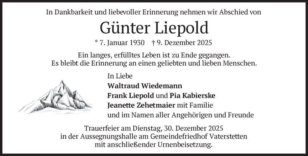 Hier finden Sie alle Traueranzeigen aus der Zeitung, die bisher für Günter Liepold erschienen sind. Weitere Traueranzeigen, die in der Zeitung erscheinen, werden hier ebenfalls aufgelistet